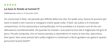 Credo fermamente che il successo nel raggiungere una salute ottimale sia il frutto di una collaborazione profonda tra professionista e paziente. Insieme si vince! Il mio obiettivo non è solo risolvere i tuoi disturbi, ma anche fornirti gli strumenti necessari per comprendere l'importanza di uno stile di vita corretto, di una nutrizione equilibrata e del cambiamento delle abitudini quotidiane.