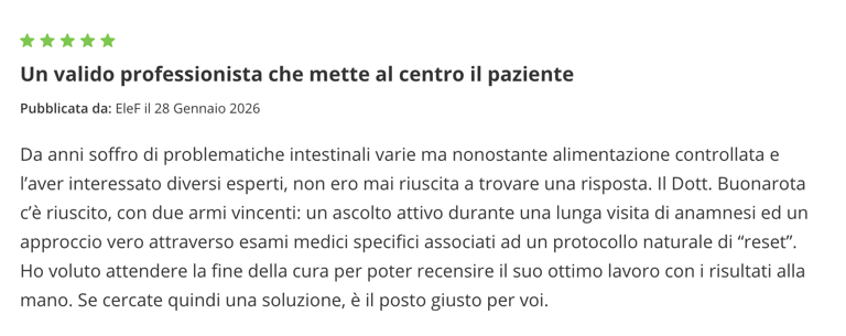 Da oltre un decennio mi dedico con passione e competenza a divulgare, aiutare e migliorare la salute intestinale e il benessere generale dei miei pazienti. La mia esperienza in gastroenterologia ed endoscopia digestiva mi ha permesso di sviluppare una conoscenza approfondita nella gestione del Microbiota e nella risoluzione dei problemi gastrointestinali più complessi.