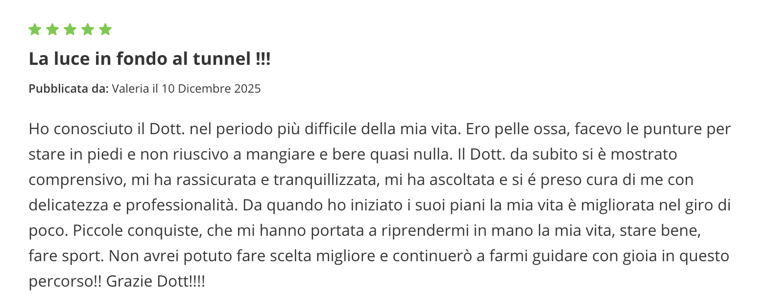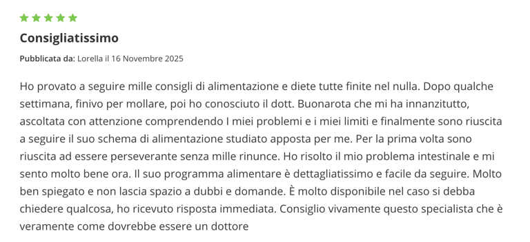 La trasformazione della tua salute intestinale non avviene dall'oggi al domani, ma con il giusto supporto professionale, ogni piccolo passo porta a risultati significativi e duraturi. Investire nella propria salute intestinale significa investire nel proprio benessere complessivo, aprendo la strada ad una vita più energica ed equilibrata.